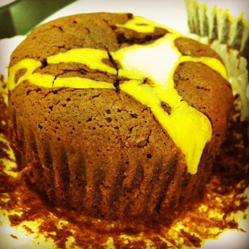 Well, at least it’s real crab meat. Hahaha! The crab was marinated well too. Ok, it wasn’t a disappointment, but dessert sure was! We heard that The Marmalade Pantry’s cupcakes were good, so we attempted to order 3 interesting ones such as S’mores, William (chocolate + pear), Granny’s Apple (cinnamon apple + cream cheese) and Strawberries & Cream. The waiter told us that there was only Elvis (PB&J) and Cloud Nine (coconut) left. We were soooo sad! When we were ready to order something else, the other waitress who served us told us that there were other cupcakes available! That waiter is damn blur, honestly. He didn’t even seem to understand what we were saying half the time We managed to get William and Granny’s Apple after all, together with Chocolate Deluxe (which turned out to be a muffin, not a cupcake!).